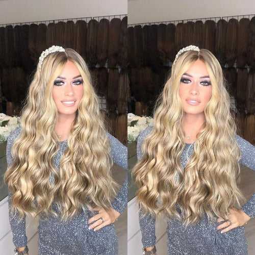 Shining bright blonde long wavy wig