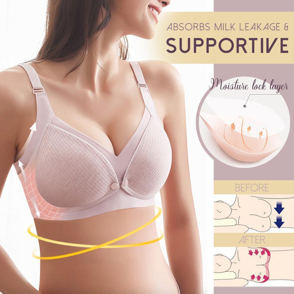 Our Post Pregnancy Bra provides the best support with ultimate comfort for growing, pregnant and breastfeeding bodies.This well-fitting wireless bra accentuates your breasts forward and together. With stretchy fabric that provides room for movement, you can now stay comfortable while your breasts get used to the milk supply eventually drying up.It lifts and supports using light molded cups, wide side wings, thick back closure, cushioned straps, and soft fabric to prevent saggy boobs during feeding and weaning period.Best of all, with front clip and buckle design which make breast-feeding way easier, you can now unclip or pull-over the bra ONE HANDED!