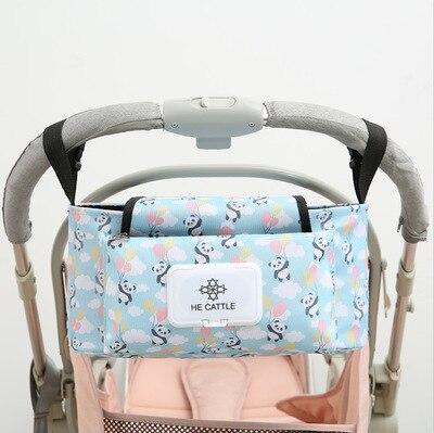 Our Stroller Pouch is a convenient carrying case for all of your baby's essentials. The pouch hangs from your stroller and has plenty of storage space for wipes, diapers, bottles, sippy cups, and more!